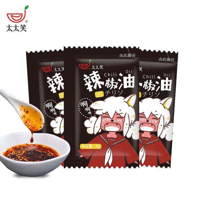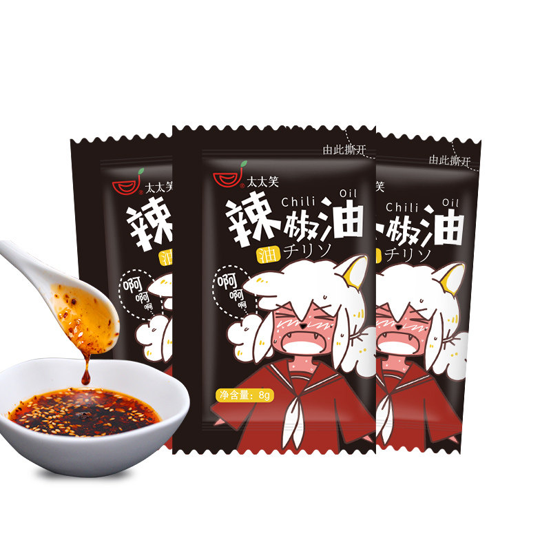 Wife Laughs Chili Oil Small Bag Cold Mix Spicy Red Oil 8g * 1000 Packs Cool Peel Water Dumplings Takeaway Commercial Chili Bag