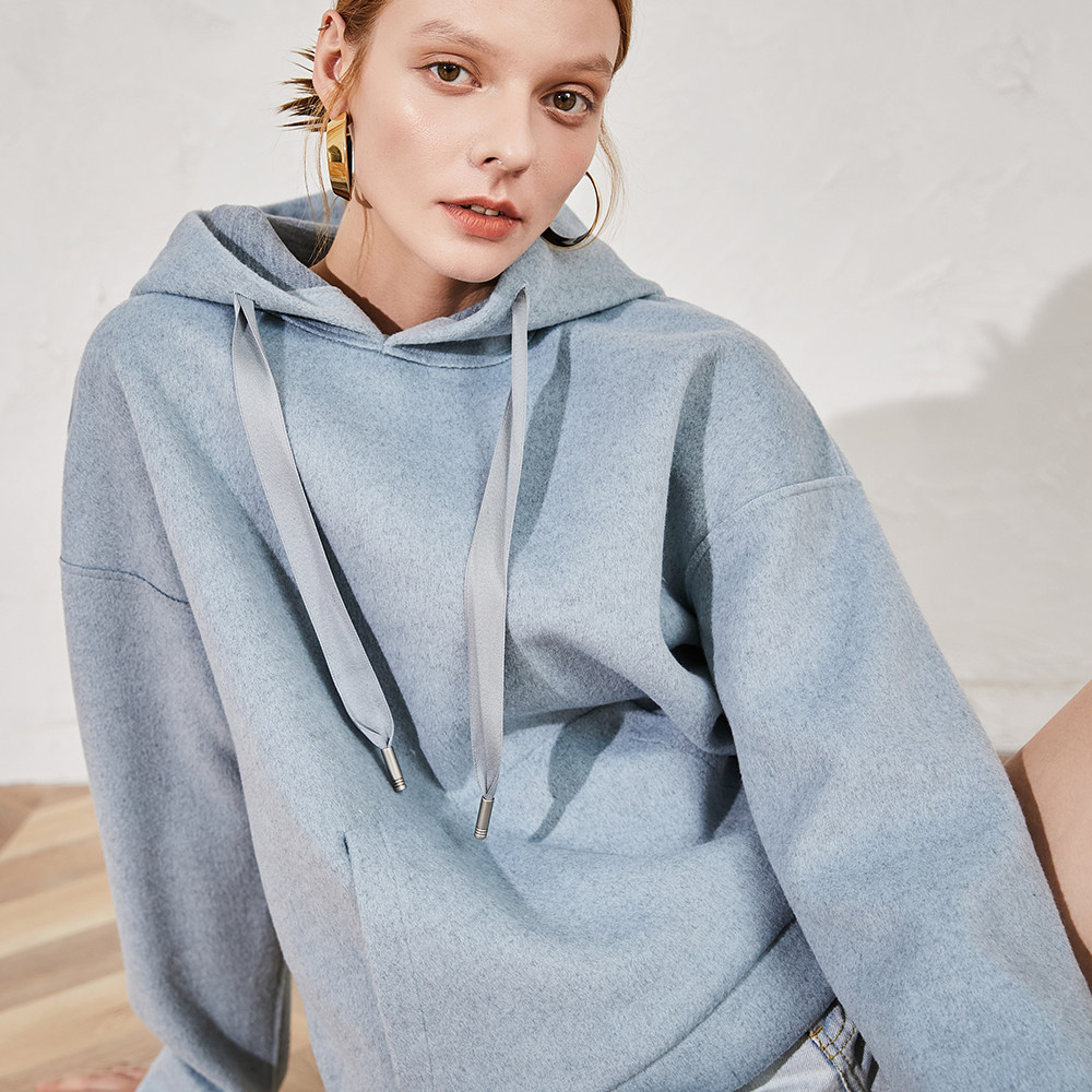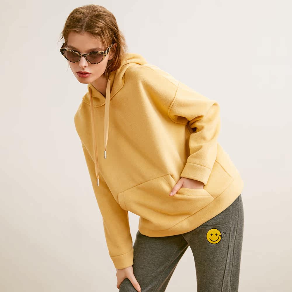 Ozhi Guoguo CHAO is good to wear thickened, even cap knitted sweatshirt female autumn winter 3 color sleeve head loose and conspiculy blouse