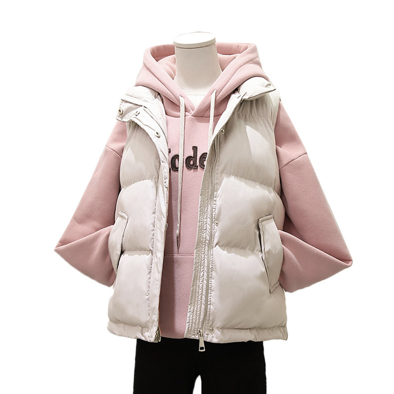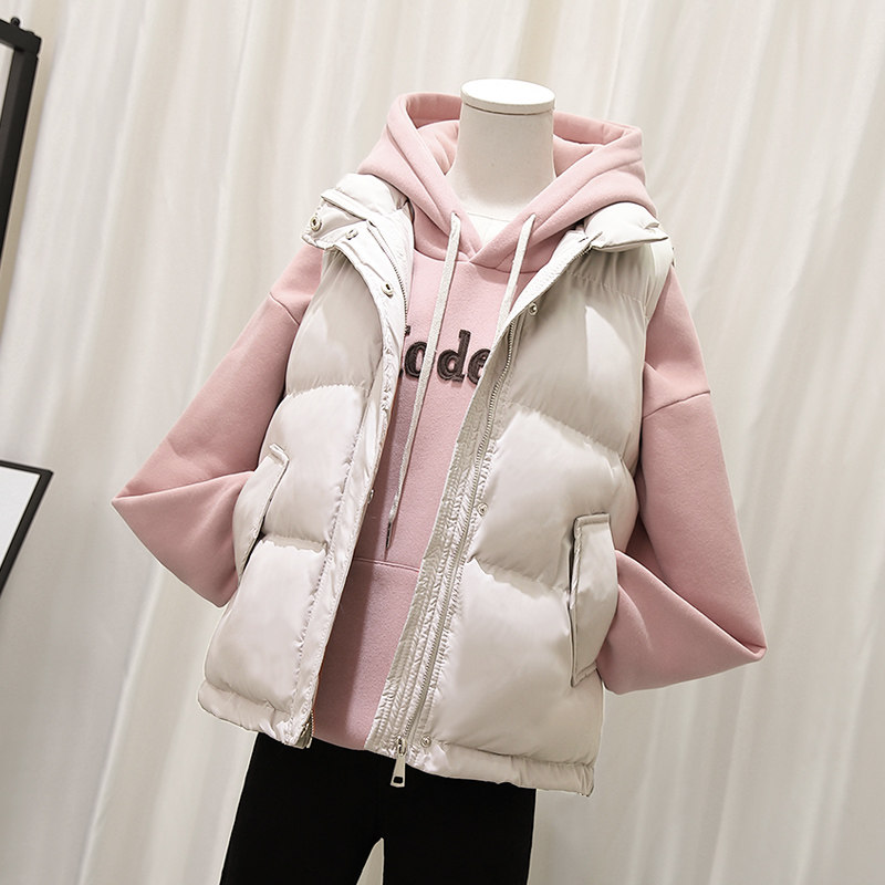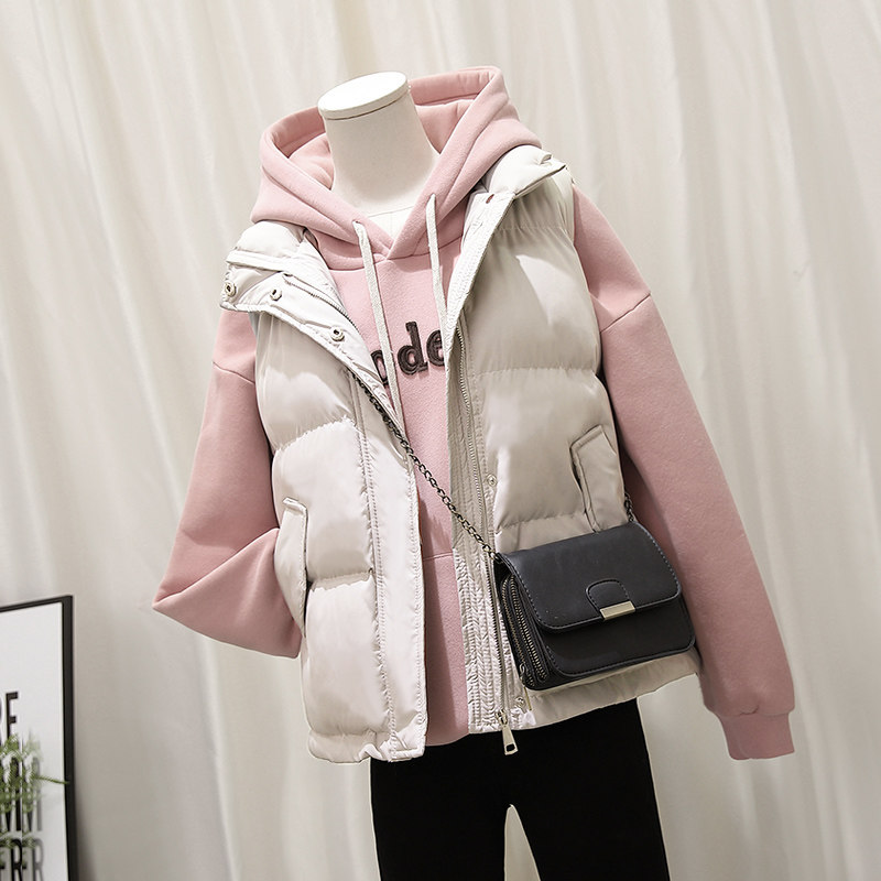 Down cotton waistcoat for female short section 2021 autumn winter new Korean version student Mclip outside wearing cotton padded jacket Waistcoat Shoulder Jacket