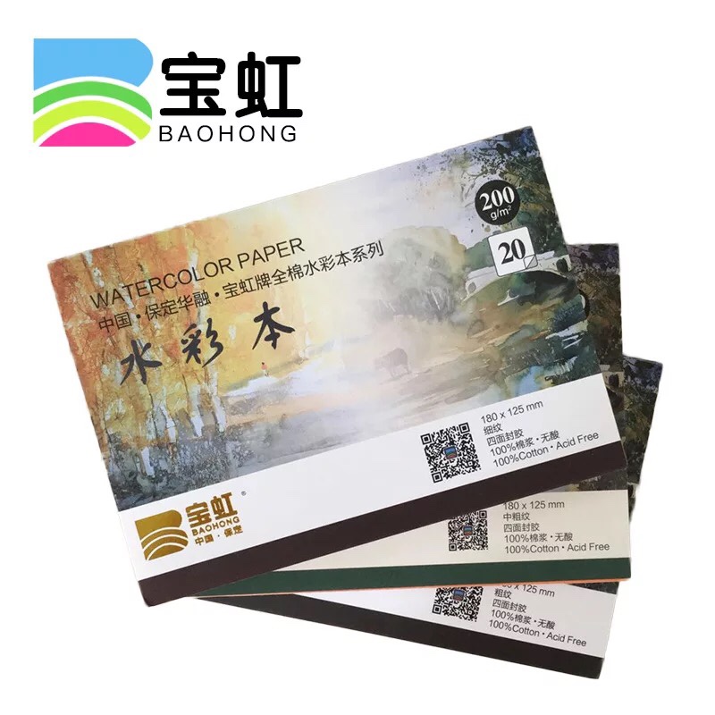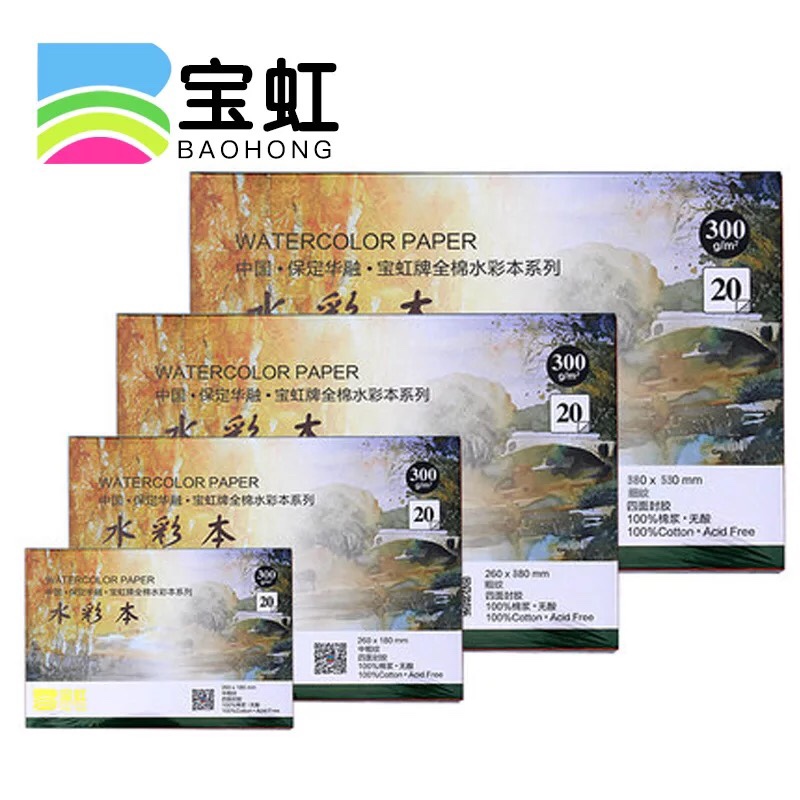 Treasure Hong Watercolor Ben 200g300g Cotton Pulp Watercolor Paper 32K16k8K Four Sides Seal Glue Color Sketchbook Sketching