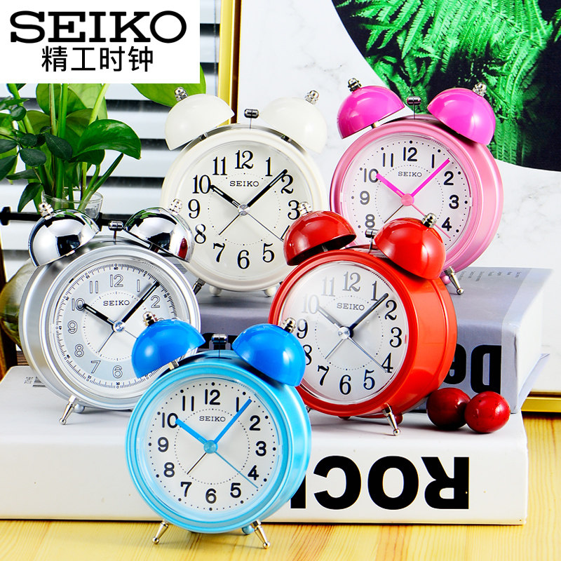 SEIKO Silent anti-snooze night light Metal bell Night light sweep second alarm clock Bedroom children student