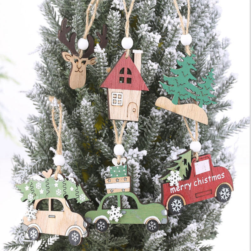 Christmas decorations wooden creative pendant Christmas elk hut car ornaments small tree hanging parts Christmas tree hanging