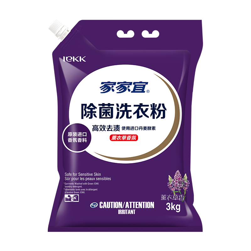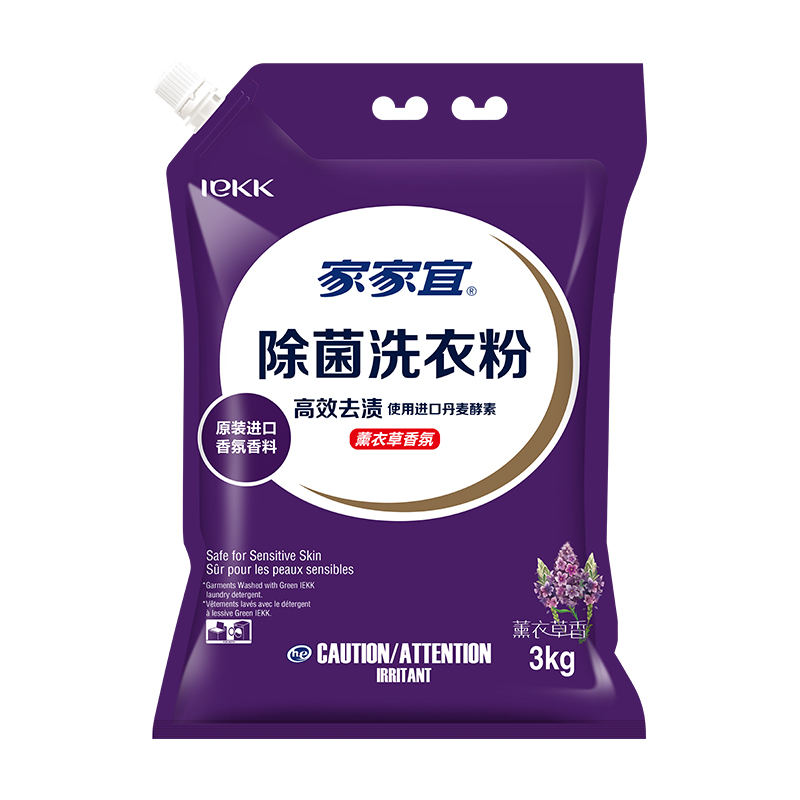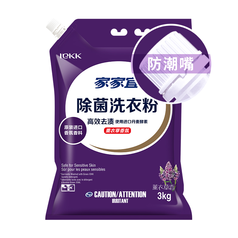 Jiajiayi lavender fragrance clean decontamination washing powder 3kg*1 bag family pack 6 pounds with mouth moisture-proof