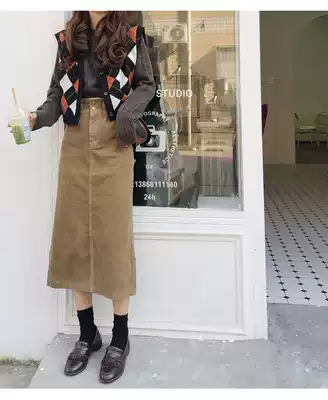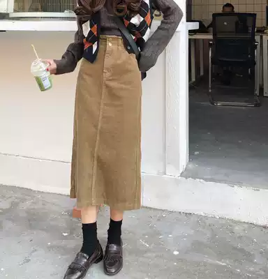 Berry likes you Retro wild corduroy skirt Female autumn temperament casual brown long skirt