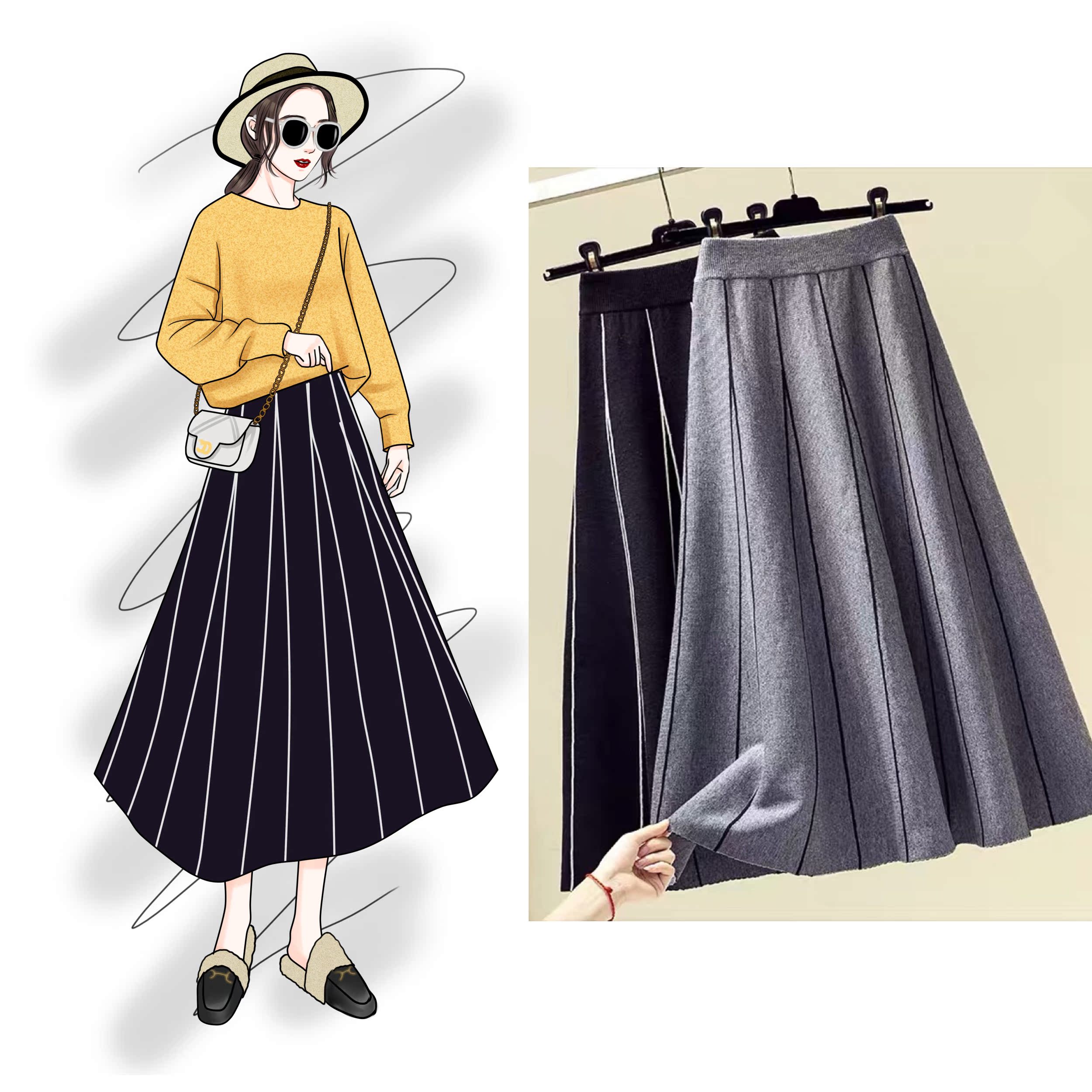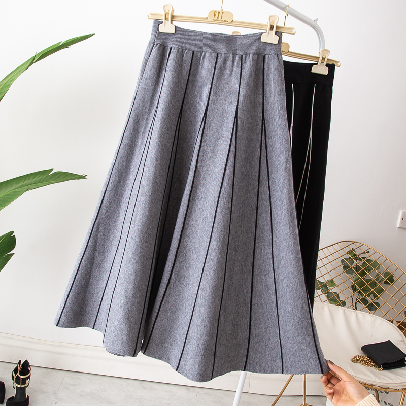 Large size dress with high waist in high waist Long version knitted half body dress 200 catty Sister conspicubo slim A character dress Long dress 100 Lap Umbrella Skirt