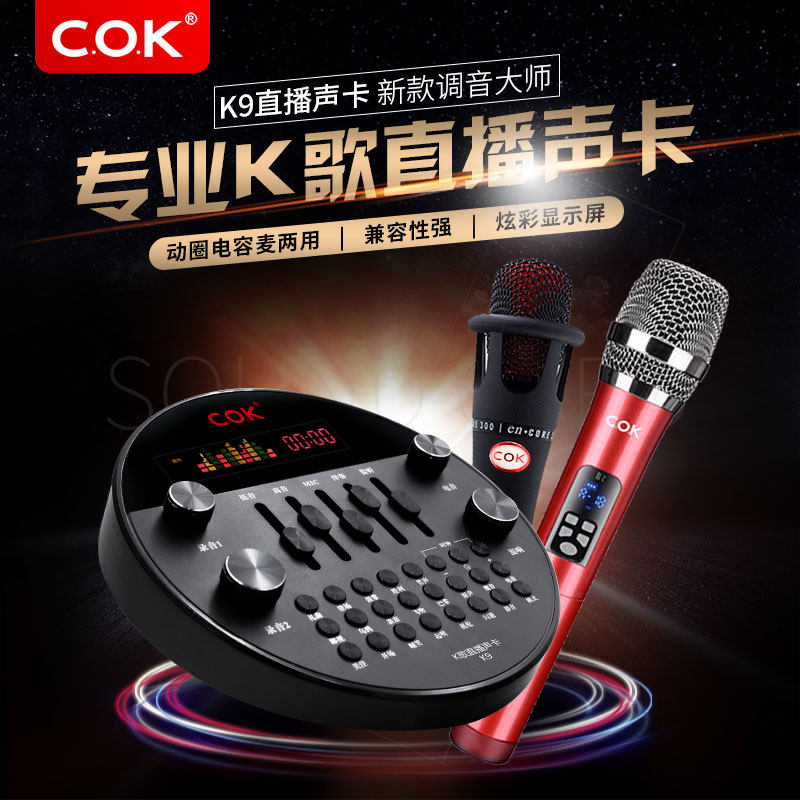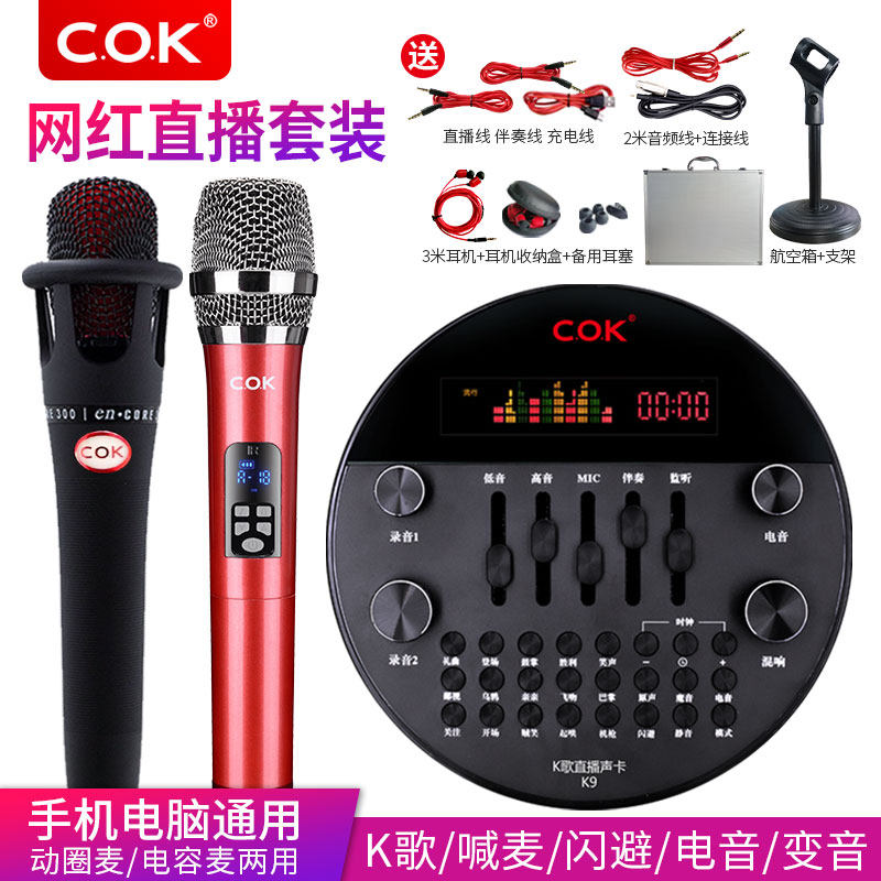 C O KK9 net red live broadcast equipment sound card set mobile phone singing anchor microphone full set of shouting microphone cok