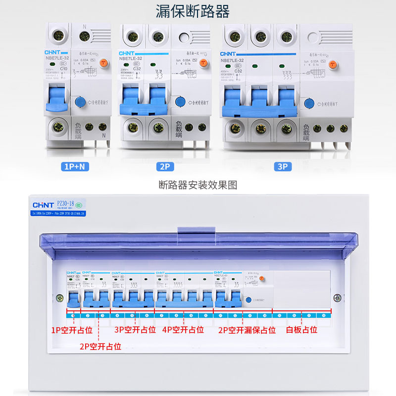 CHINT Electric air switch with leakage protector Air switch household 2P63A32A safety leakage protection switch