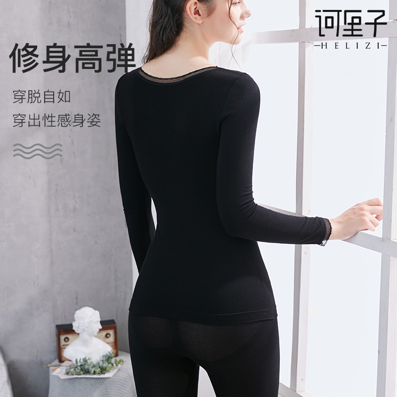Cuff lace round neck warm clothes Student autumn clothes Sanitary pants Cotton thin section base shirt Intimate underwear Autumn and winter girl