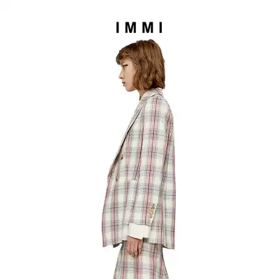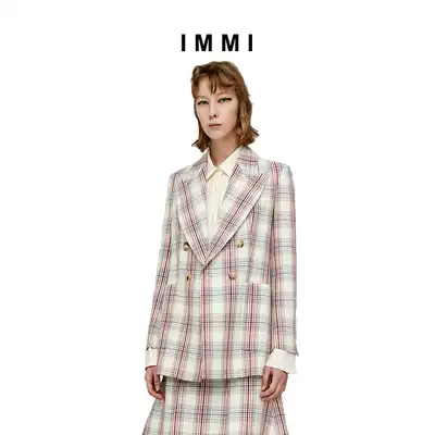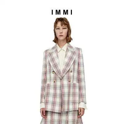 (Designer brand IMMI) show the same pattern check wool double breasted suit 192JK049X