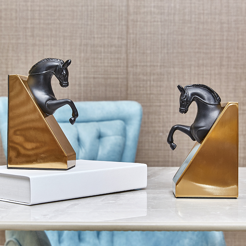 European-style American-style home model room study bookend bookcase wine cabinet bookcase decoration brass black horse soft decorations