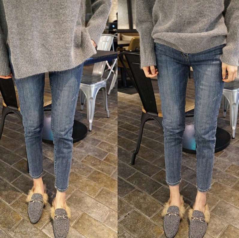 Denim smoke pipe pants women's summer high waist spring and Autumn 2021 new outer wear nine points Korean version slim slim wild plus velvet