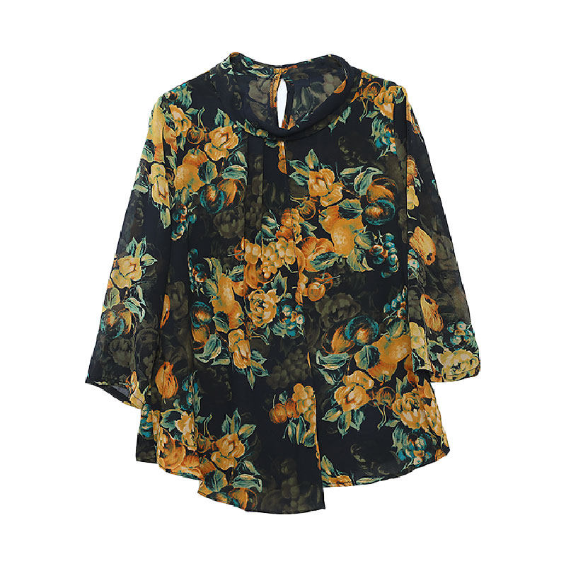 Autumn-style blouses female fashion foreign gentresses 2021 new Korean version Temperament Ladies Display Slim size printed snow-spinning blouses