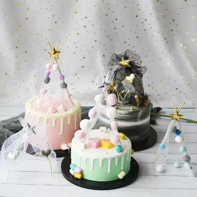 Net red tent iron cake decoration cake ornaments with landscape card baking decoration birthday