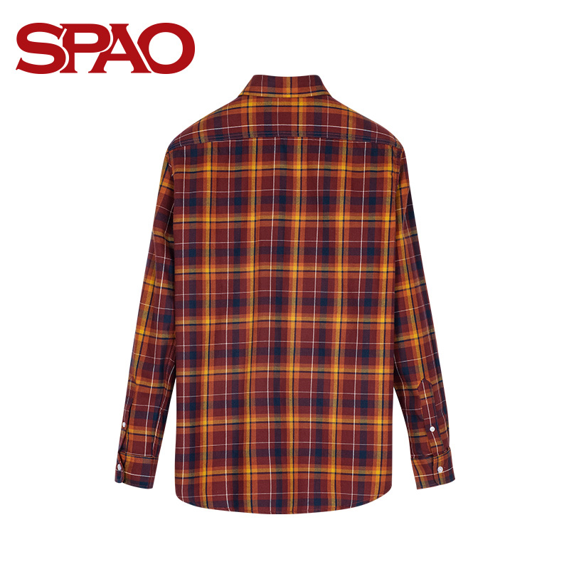 SPAO men's check flannel long-sleeved shirt autumn new fashion Korean casual SPYC949P01