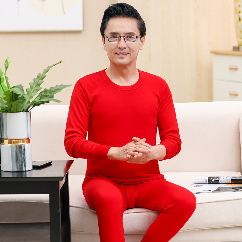 This Life Year Autumn Clothes Sanitary Pants Middle Aged Pure Cotton Thin Fever Coat Full Cotton Men's High Collar Cotton Sweatshirt Big Red