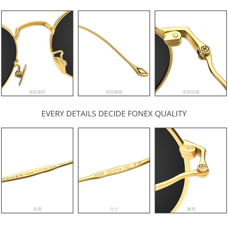China mirror FONEX ultra-light pure titanium polarized sunglasses female brief retro art round sunglasses men's accessories mirror