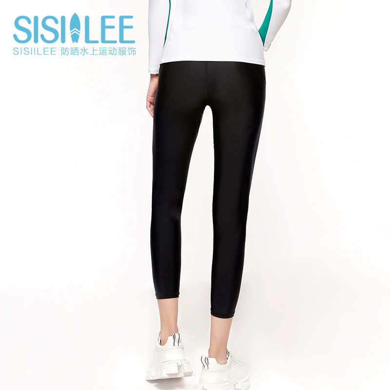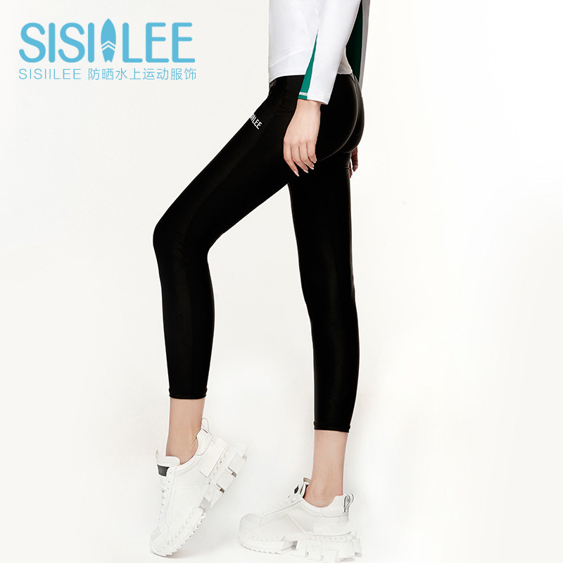 Sicily seven-minute swim pants female beach trousers sports sunscreen dry long leg, hips plastic pants are thin black