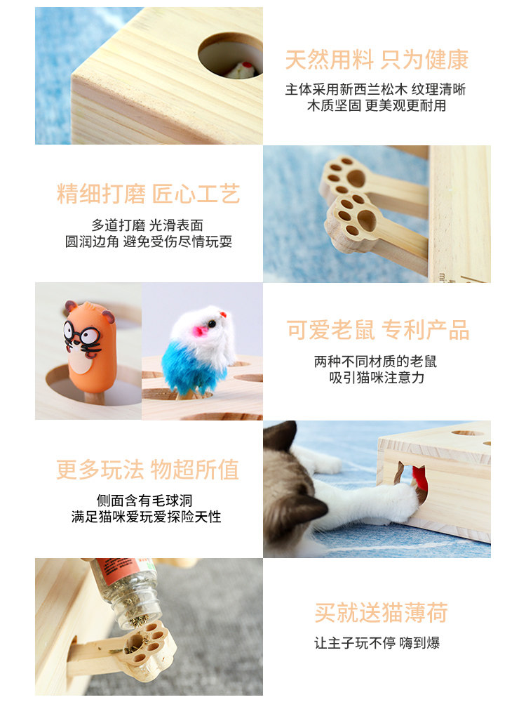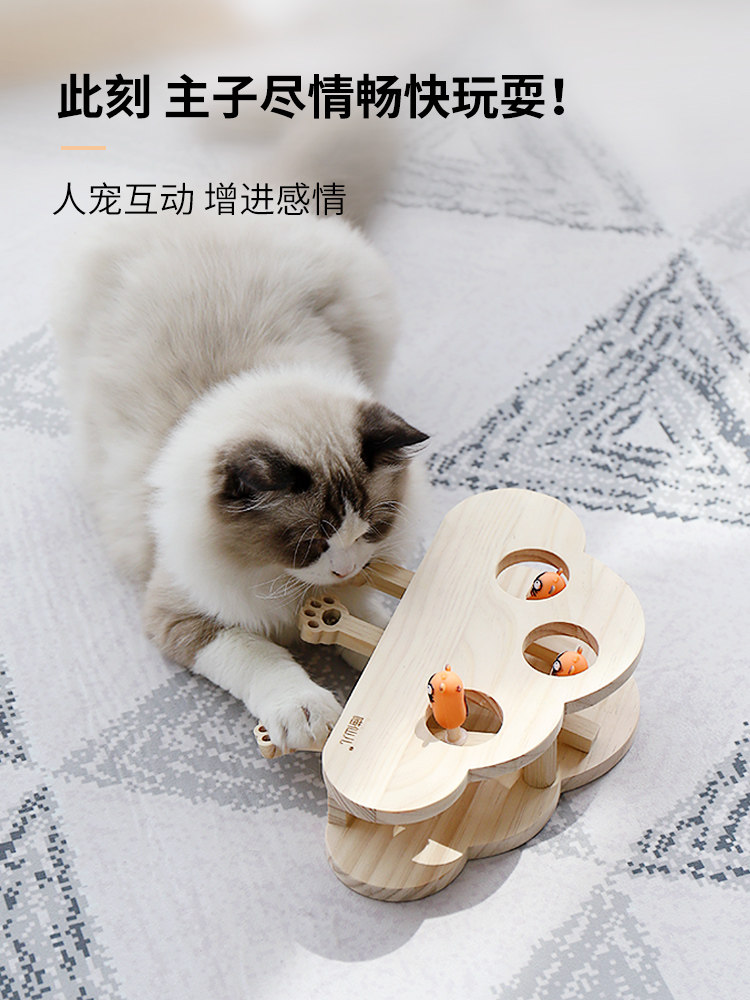 Cat toy net red whack-a-mole teasing cat stick teasing cat toy self-hi little mouse interactive solid wood cat supplies