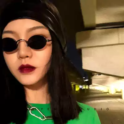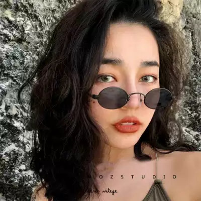 Korean version of tide retro Harajuku narrow frame cat eye sunglasses female ins Net red European and American hip hop round sunglasses ulzzang