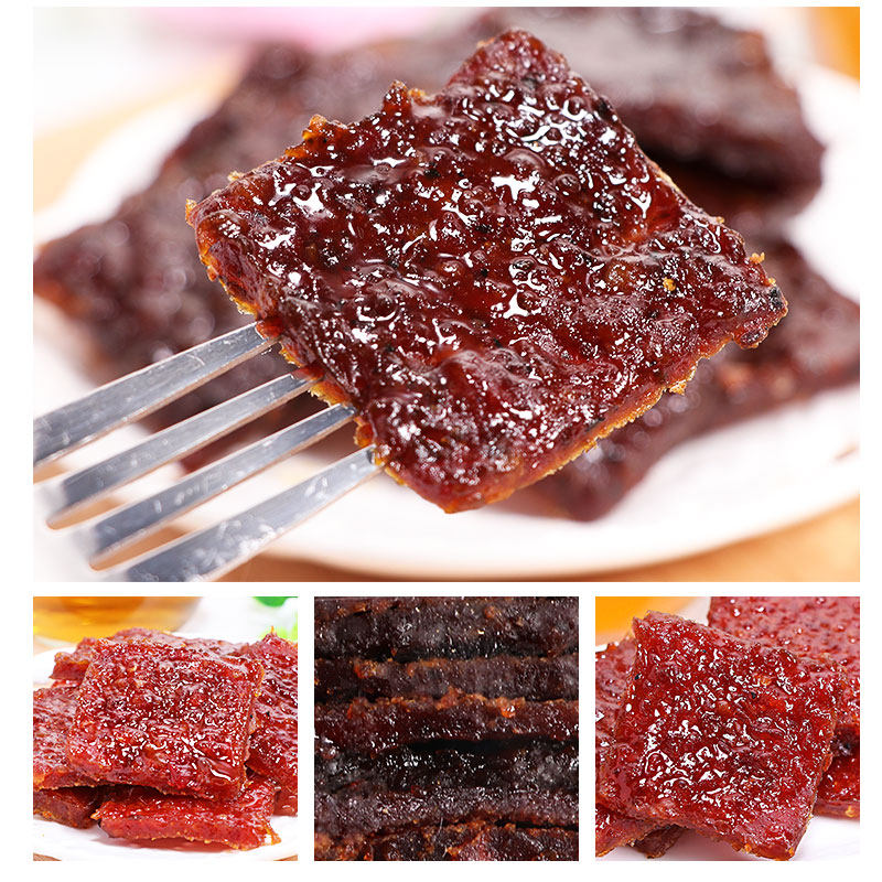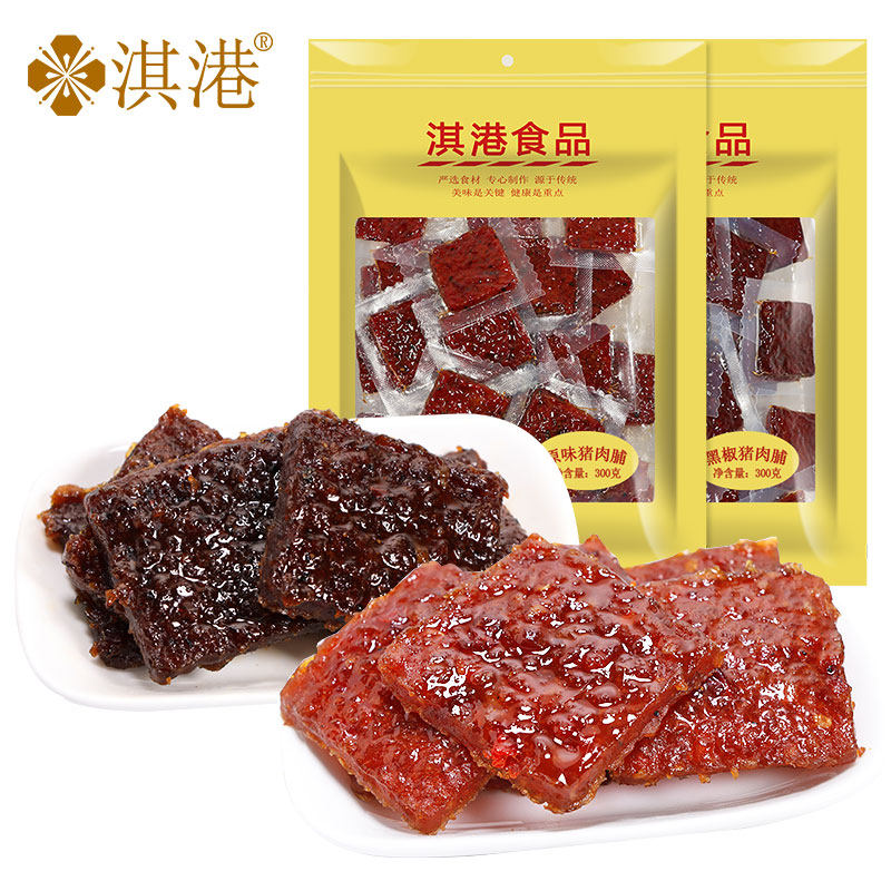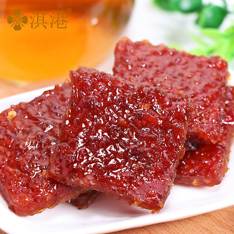 Qi Hong Kong Food Macao Specialty Taste Pork Dried Black Pepper Zhuhai Guangdong Shenzhen Hand Letter Snacks 300g Bags