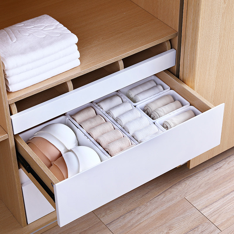 Retractable storage box drawer storage grid tableware finishing box plastic partition box small box storage box