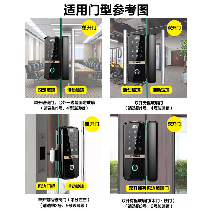① Single double switch glass door (door and door frame are glass) ② Single open edge glass door (door is glass door frame with edge) ③ Wooden door Iron door glass door (all edge) ④ Single double open