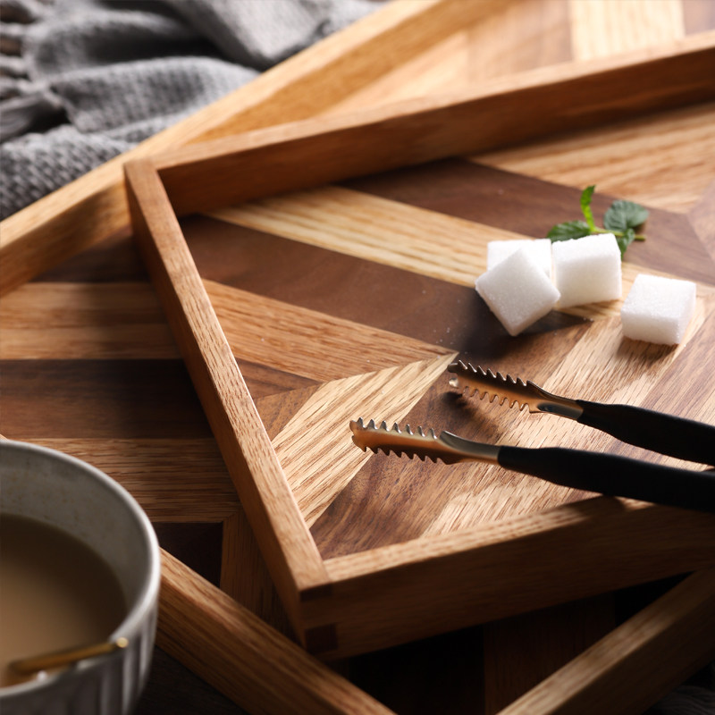 Wood said Nordic style Oak black Walnut Tuscan tray Solid wood breakfast inventory heart plate Tea tray