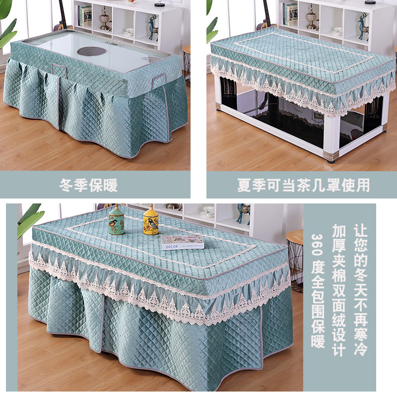 Electric Furnace Hood Grilled Fire Cover Rectangular Tea Table Thickened Cotton Plus Suede Electric Heating Stove Fire Hood Sleeve New Home Heating Hood Quilt