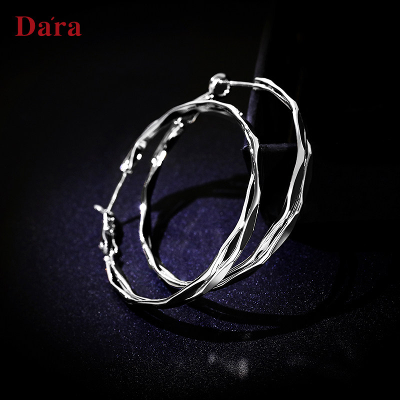Della 925 Silver Needle Exaggerated Geometric Large Earrings Earrings Earrings 2021 New Wave Advanced Sensation Circle Net Red South Korea Women