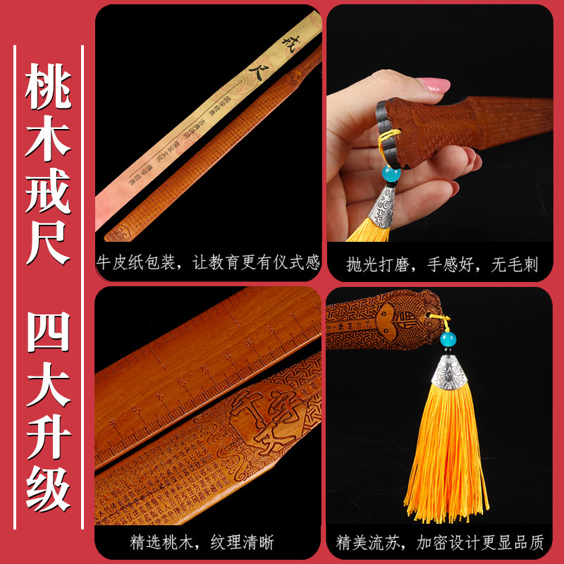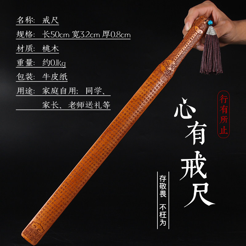 Ruler teaching whip home teacher women's special thickening peach wood carved Chinese school disciple rules three-character scripture teaching ruler gifts