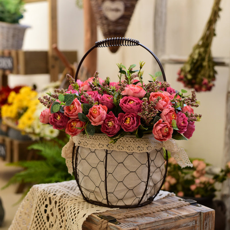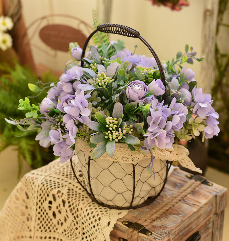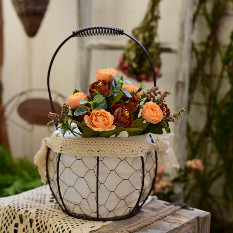 Creative Korean-style flower basket portable ins woven flowerpot dry flower fake flower flower arrangement basket flower flower arrangement flower storage basket