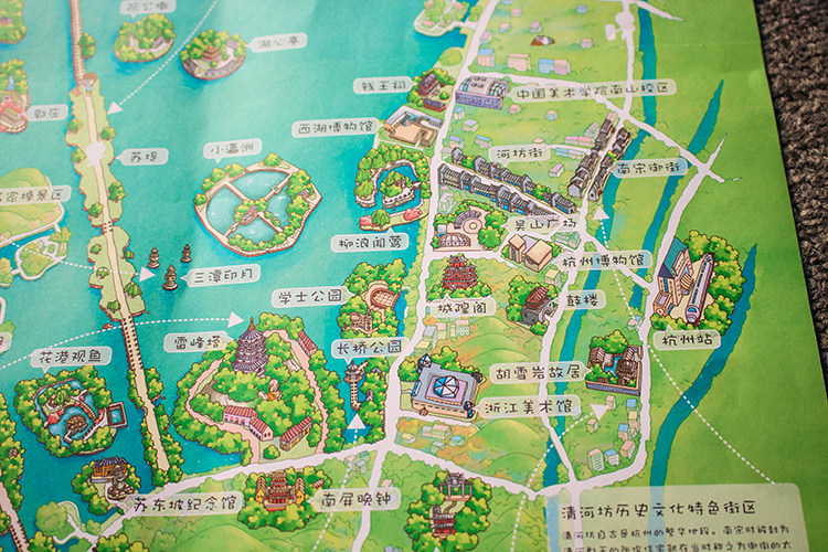 (Hangzhou Handpainted Map) Hangzhou Tourism Attack Hotel Attraction West Lake introduces Hangzhou Map