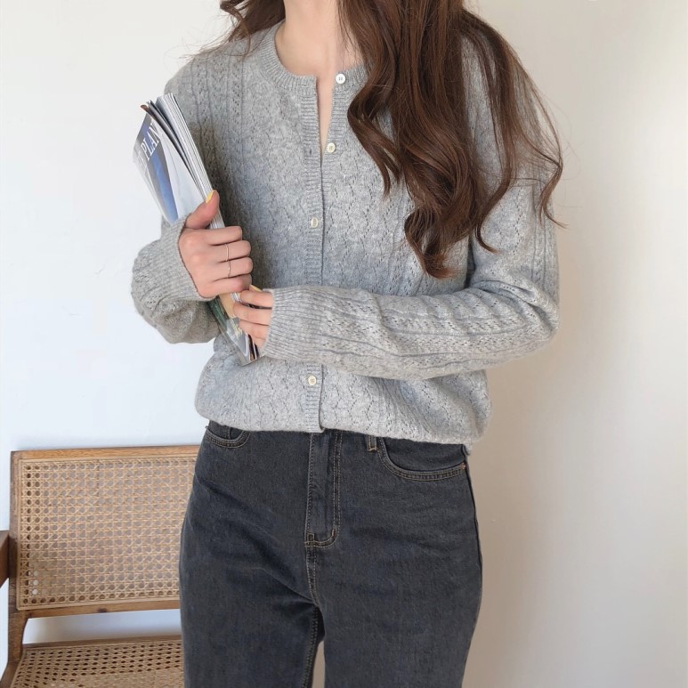 2019 Korean version of early autumn new round neck hollow sweater cardigan women's short loose knitted cardigan fashion jacket