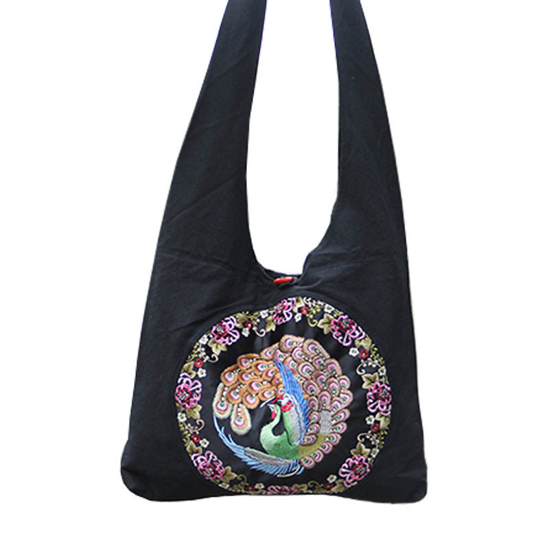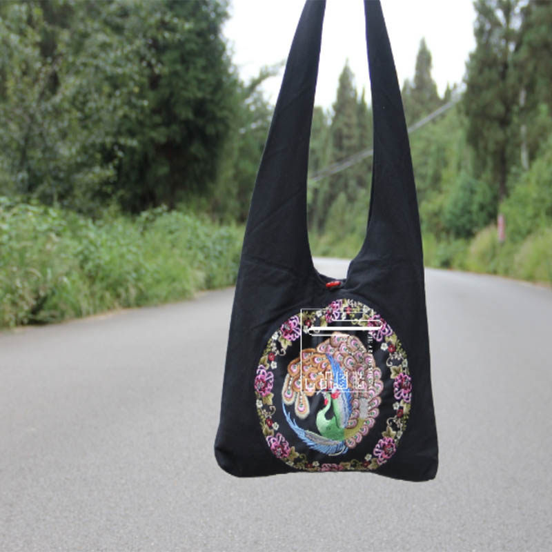 Cloud decoration totem original design women's shoulder bag ethnic style embroidery Peacock fashion all-match oblique travel bag
