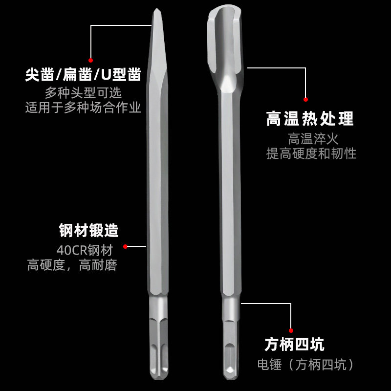 Electric hammer drill impact drill bit square handle hexagonal handle tip flat chisel pick brazing electric pick head shovel U-shaped chisel slot through wall drill