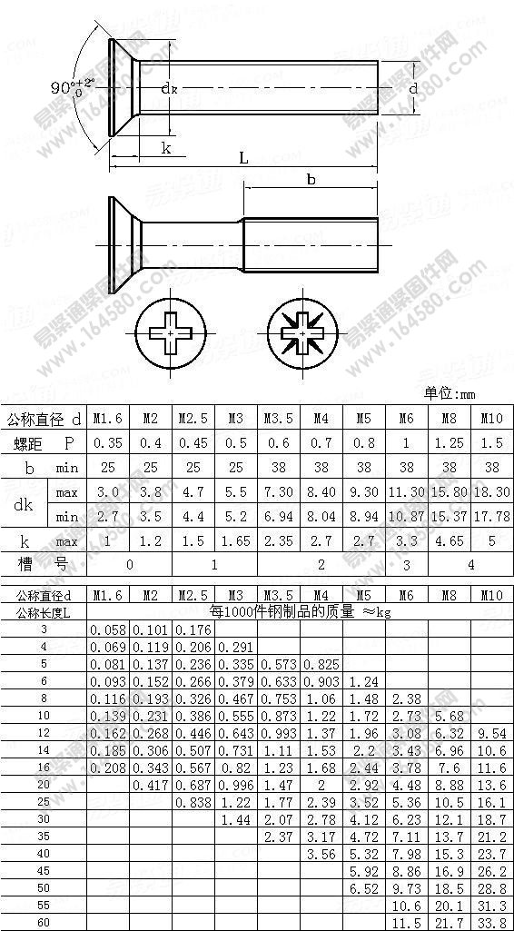 GB819 countersunk head cross machine screw flat head screw M12*30*35*40*45*50*55*60