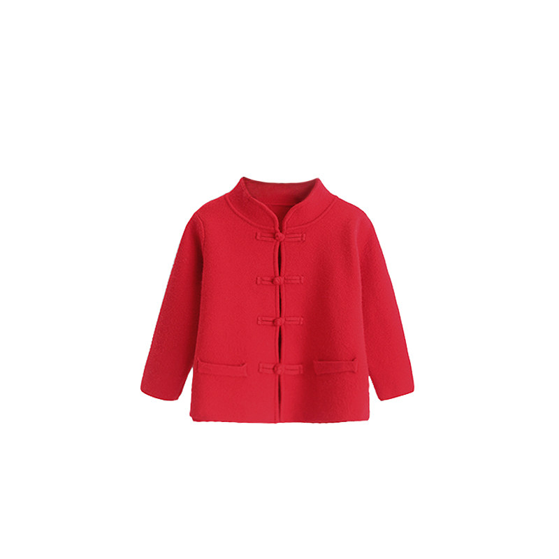 Children's Knitted Cardigan Baby's Fall/Winter Sweater Jacket for Boys and Girls Chinese-style Dirt Tang Dress New Year Dress Parent-Child Dress
