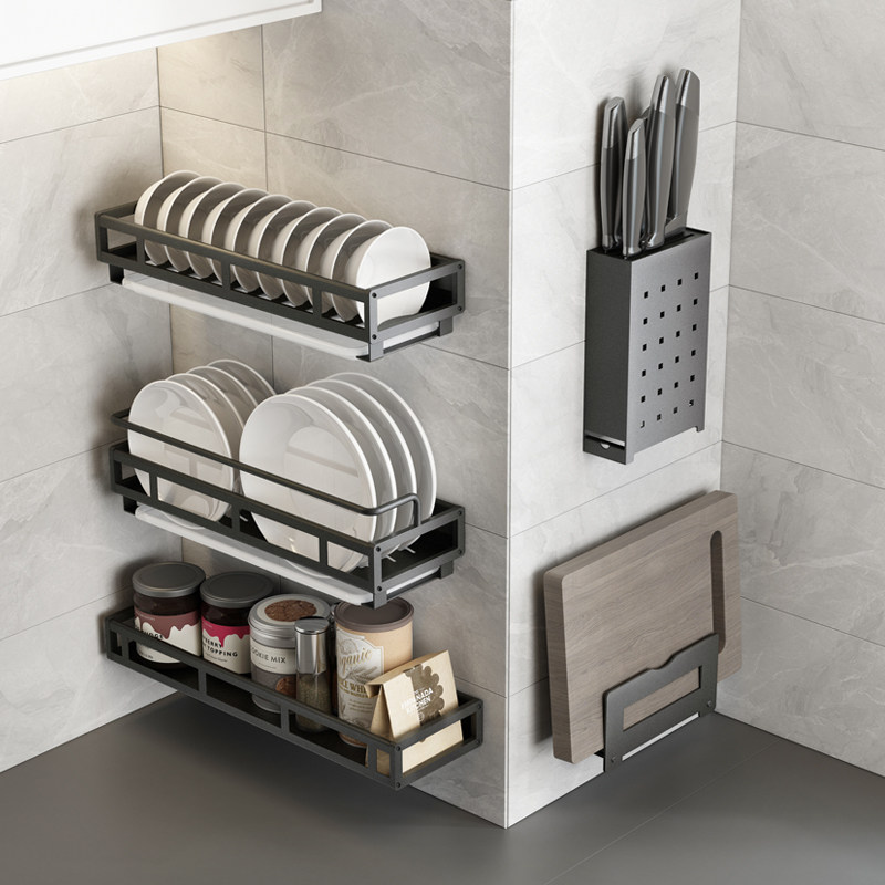 Grey Black Two-Color Optional Default Fat Grey Package A (Chopping Rack Lid Rack Chopsticks Rack Kitchen Towel Rack) Package B (Chopping Rack Lid Rack 40cm Seasoned Jar Rack) Package