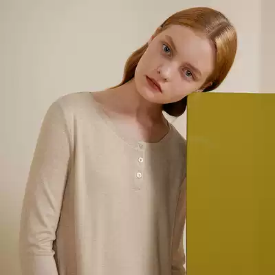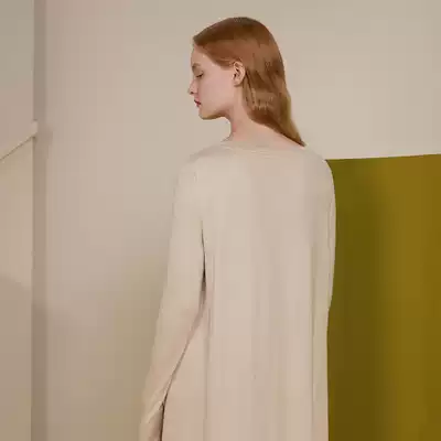 NEIWAI inner and outer silk soft spinning side slit long-sleeved dress women's home night dress women's spring and autumn medium and long version of elegance