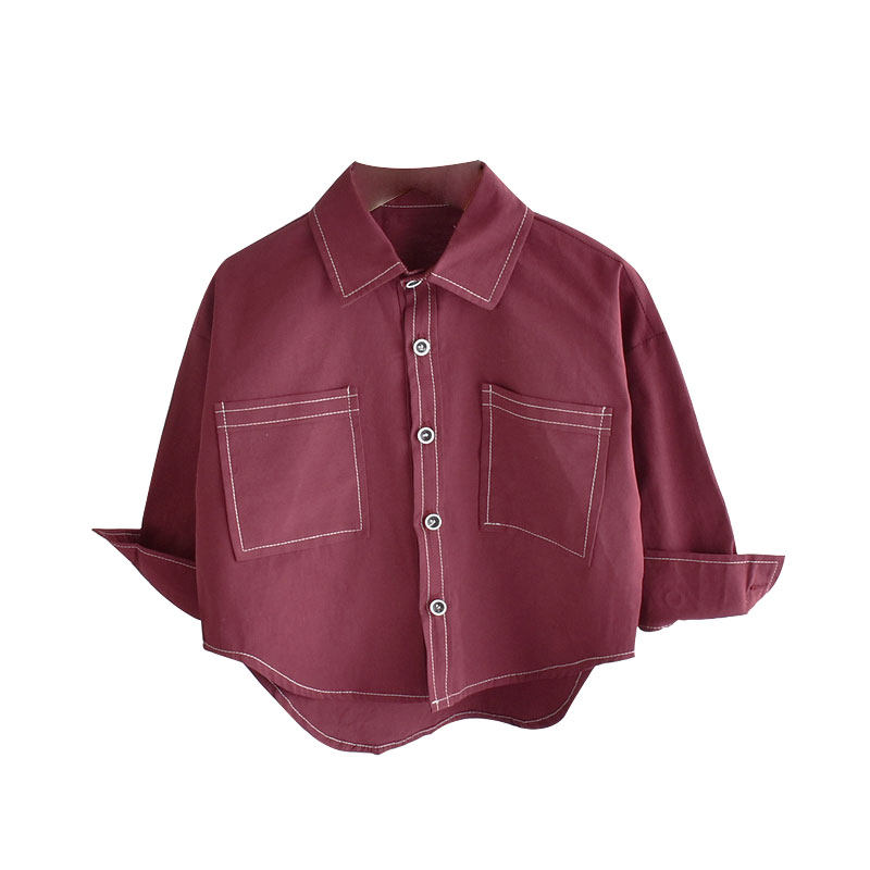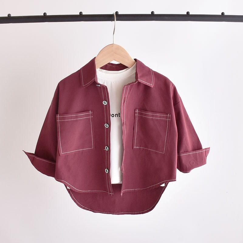 Boy shirt 2021 new spring loaded denim wine red infant jacket children's spring and autumn shirt tide fairyboy blouses