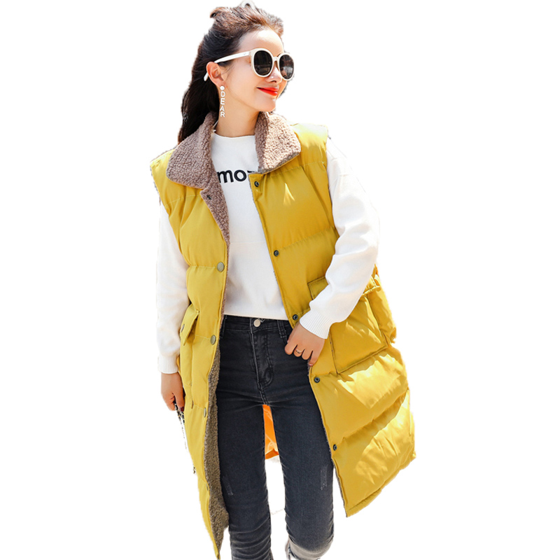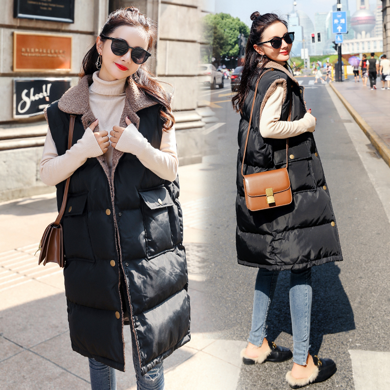 2020 winter wear new Korean version maternity wear thin medium long vest fat MM wool lamb jacket 200 pounds cotton suit