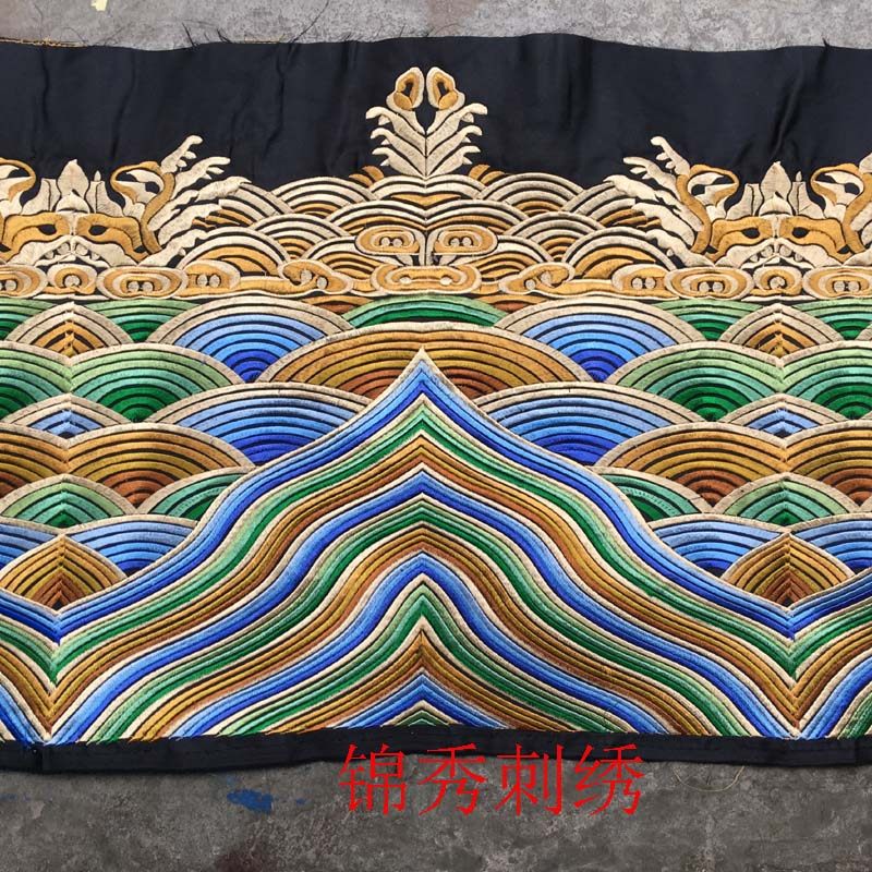 Seawater River Cliff Qing Dynasty Minister's Official Dress Skirt Embroidery Chinese Wind Wave Pattern Shadow Drama Characteristic Embroidery Piece Clothing Accessories