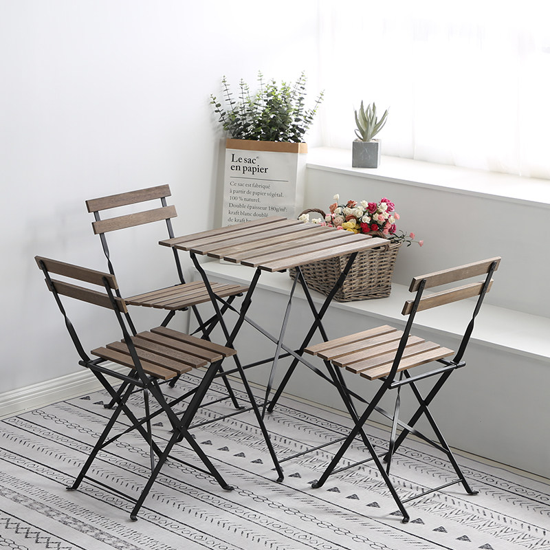 Folding table and chair combination backrest chair balcony chair home simple garden small table terrace outdoor courtyard iron chair