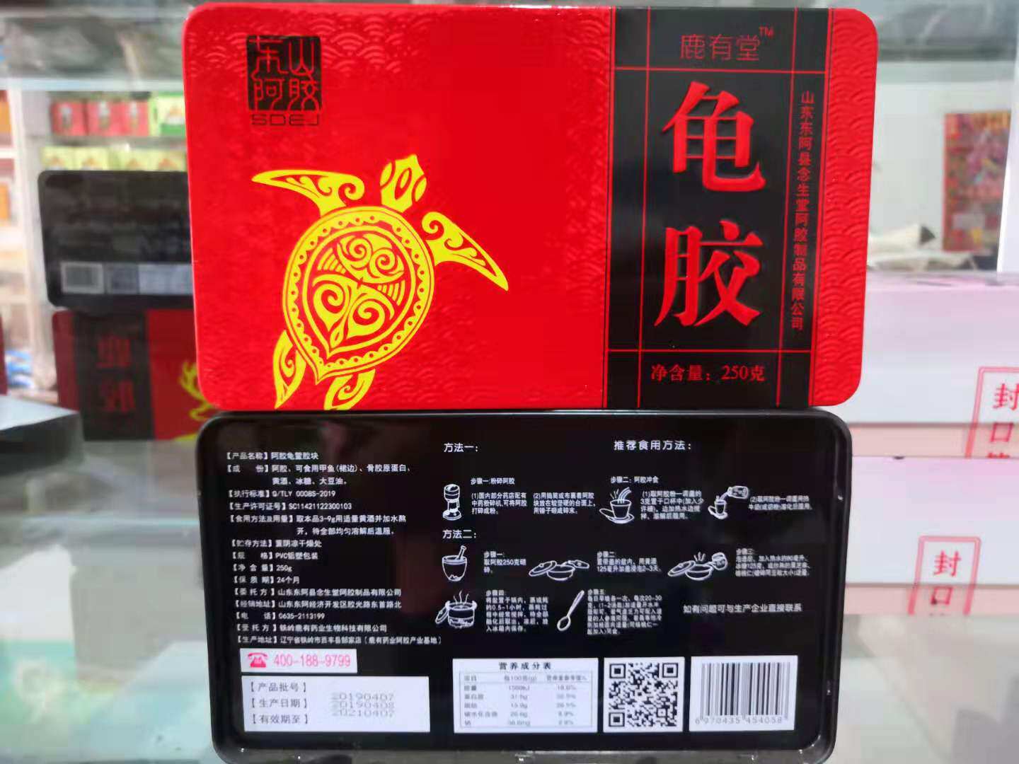 Iron box Shandong turtle shell glue turtle glue block 250g turtle glue with anti-counterfeiting code and 2 boxes of antler glue