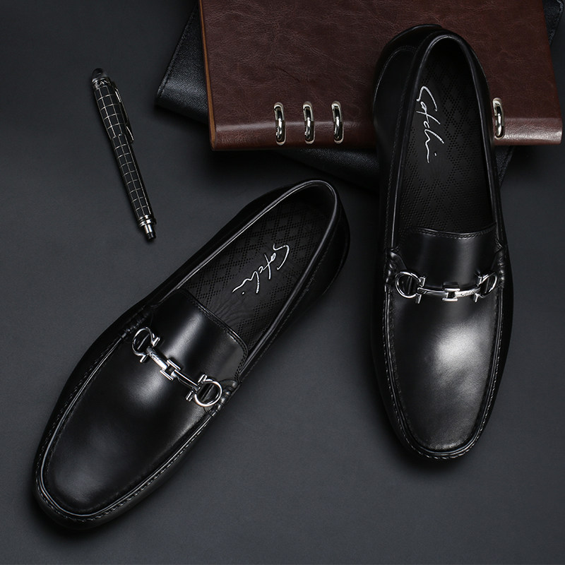 Shalloon Men's Shoes Men's Bean Shoes Genuine Leather Leather Shoes Summer New Business Casual Shoes Sloth Shoes A foot pedal male