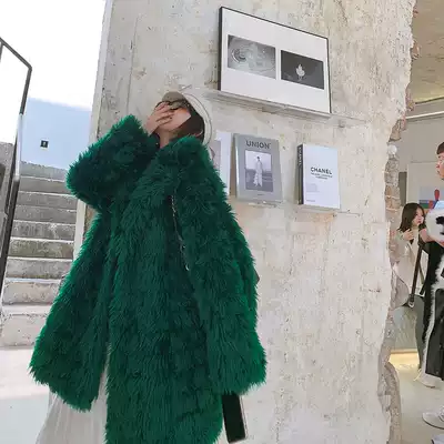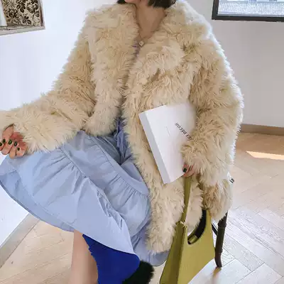Fluffy coat women's 2020 new women's western style mid-length version thickened loose thin large lapel imitation leather grass jacket