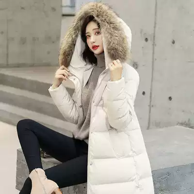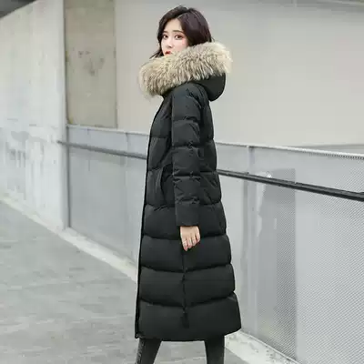 Gaofan down jacket women's 2021 new explosive long version over-the-knee fashion real fur collar Korean loose thickened jacket
