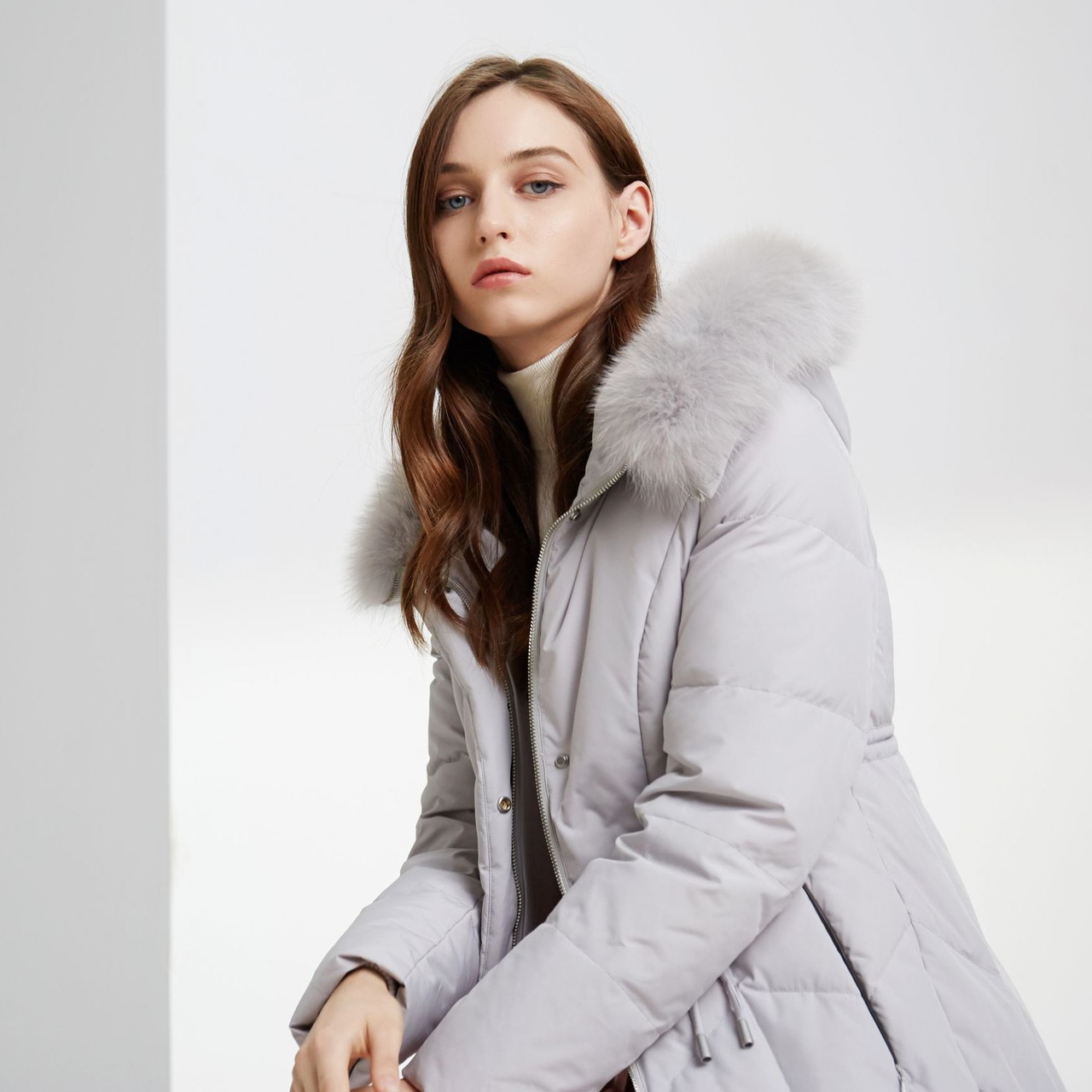 Bourgendon Outlets Ole female fox fur collar in long version Fashion warm and cold-proof elegant high-end down jacket