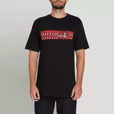 volcom Diamond Summer Men Short Sleeve T-Shirt Black Punk Cotton Print Loose Regular Round Neck Youth