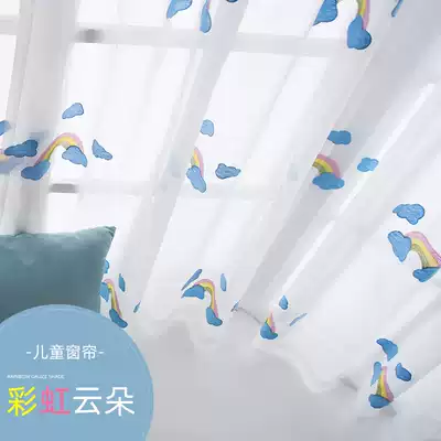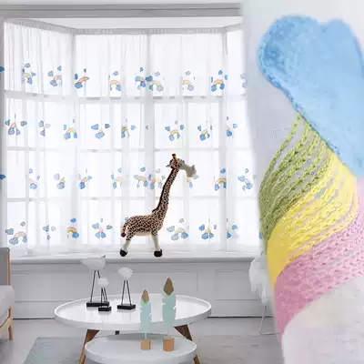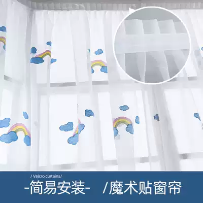 Children's room curtains punch-free installation velcro white yarn Boy and girl bedroom self-adhesive shading balcony yarn